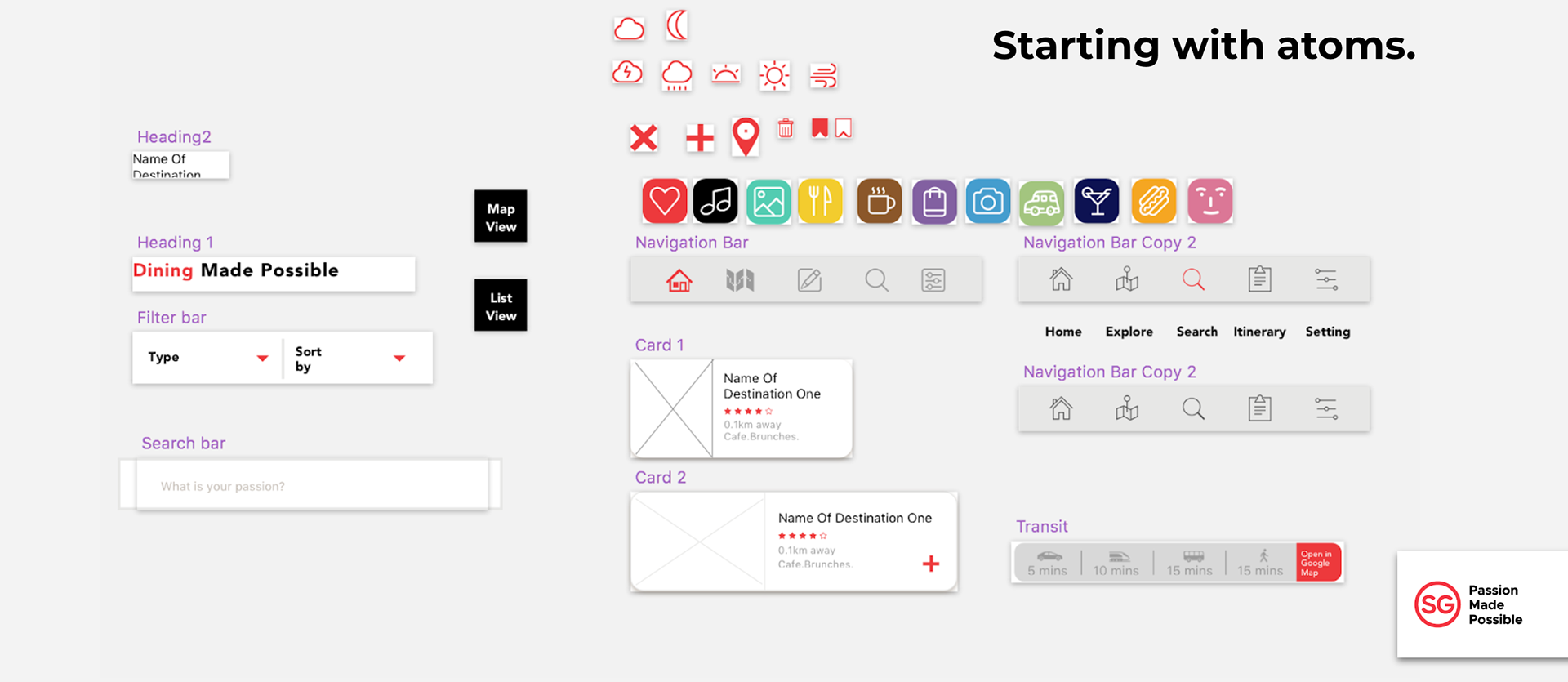 After we finalised our wireframes, I then created atomic elements and distributed it to my team members this way we can all work on the design effectively.