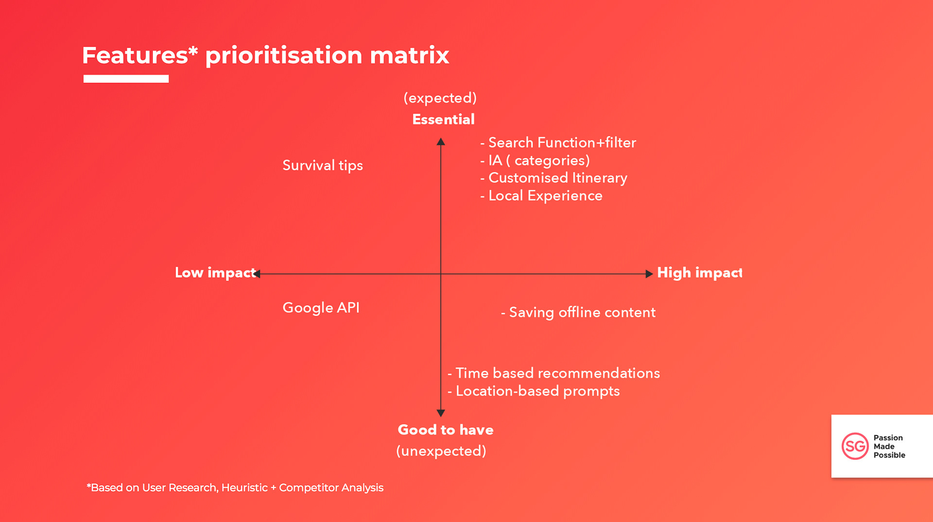 We only had a period of 2 weeks for this sprint so we had to prioritise features on the right side of the matrix to implement first.