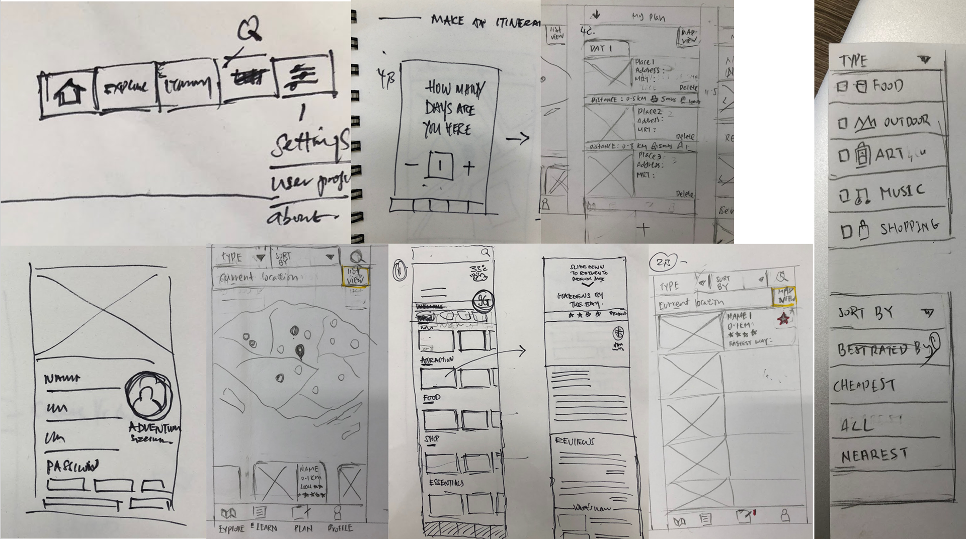 We began the sketching wireframes for the new design, testing different kind of layouts and flow to see which would work most effectively.
